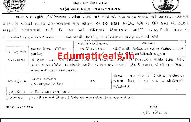 Ahmadabad Municipal Corporation Published Notification For Recruitment Various Post